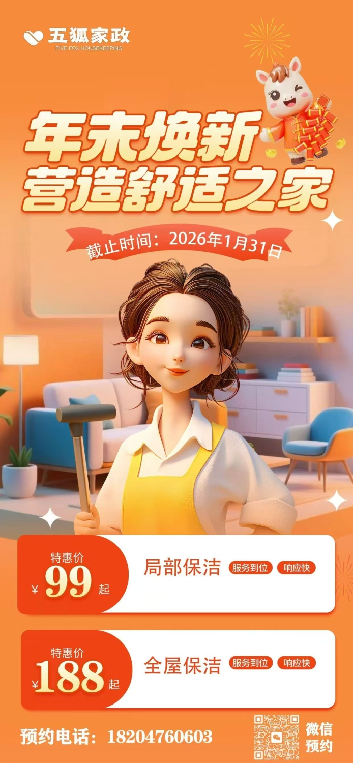 年末换新保洁服务,低至99元,提前预约吧!金牌家政福利,让家更温馨!188 ...